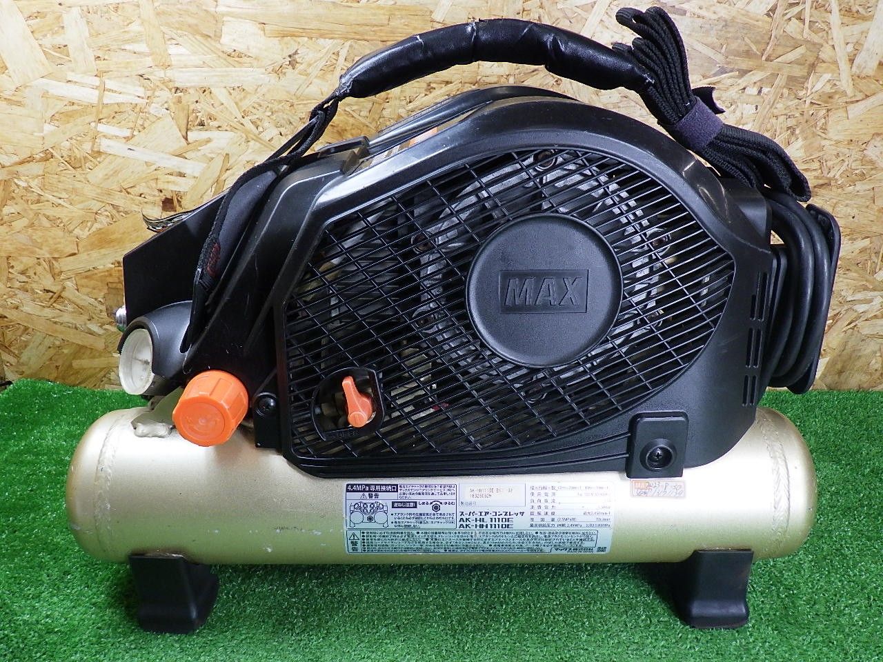 満タンまで約3分40秒 MAX 高圧エアコンプレッサ AK-HH 1110 E 高圧 4口 シール剥がれあり 持ち運び楽 品