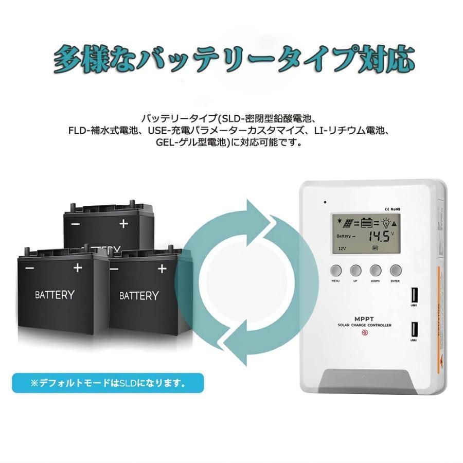 LCD液晶画面付き 温度センサー付き ソーラー充放電 太陽光発電用 鉛酸 リン酸鉄リチウム 三元リチウムに適用