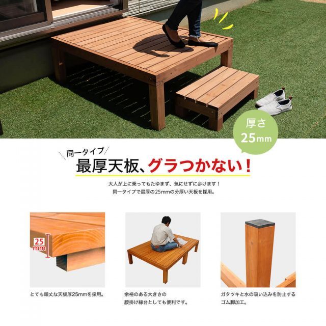 ガーデンガーデン ウッドデッキ キット 天然木製 ユニット式デッキ縁台 2台セット ×90 cm×40 cm 床板25 mm ライトブラウン