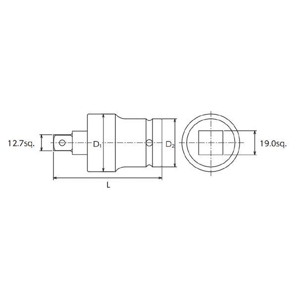 ■19.0sq.のインパクトレンチで12.7sq.のインパクトレンチ用ソケットを使用可能にする、ユニバーサルジョイントアダプタ。