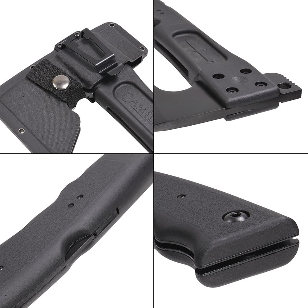 ハチェット(手斧)にノコギリを内蔵させたことで、主に樹木の切断・加工などにおける作業を円滑に進めることができます。ノコギリの刃は斧のグリップ部分に収納されており、必要に応じて素早く刃が取り出せます。