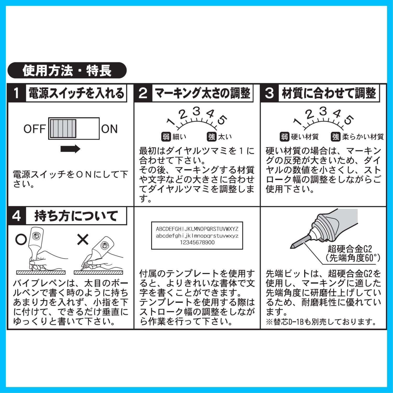 ・ルーターのような回転ではなく振動彫刻のため、滑りにくく、マーキングしやすいです。