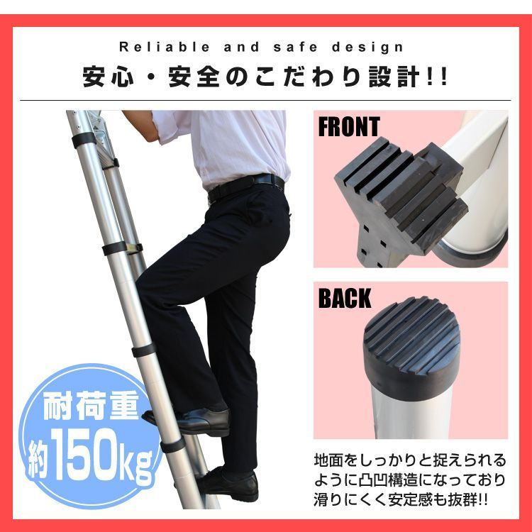 はしご 伸縮 脚立 アルミ ハシゴ 伸縮はしご 3.8 m 折りたたみ アルミはしご 梯子 足場 踏み台 踏台 スーパーラダー 安全ロック付き 掃除 雪おろし ガーデニング 洗車 WEIMALL ウェイモール