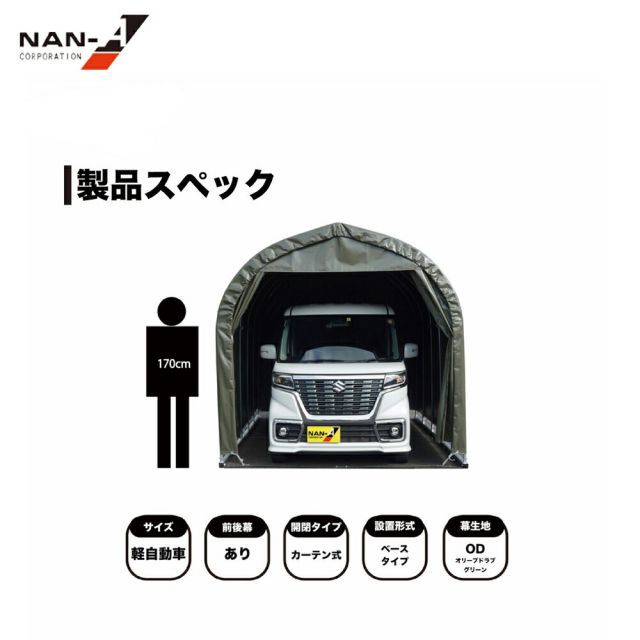 ナンエイ パイプ車庫 ベース式 軽自動車用 受注生産品 オリーブドラブグリーン 2540 B OD