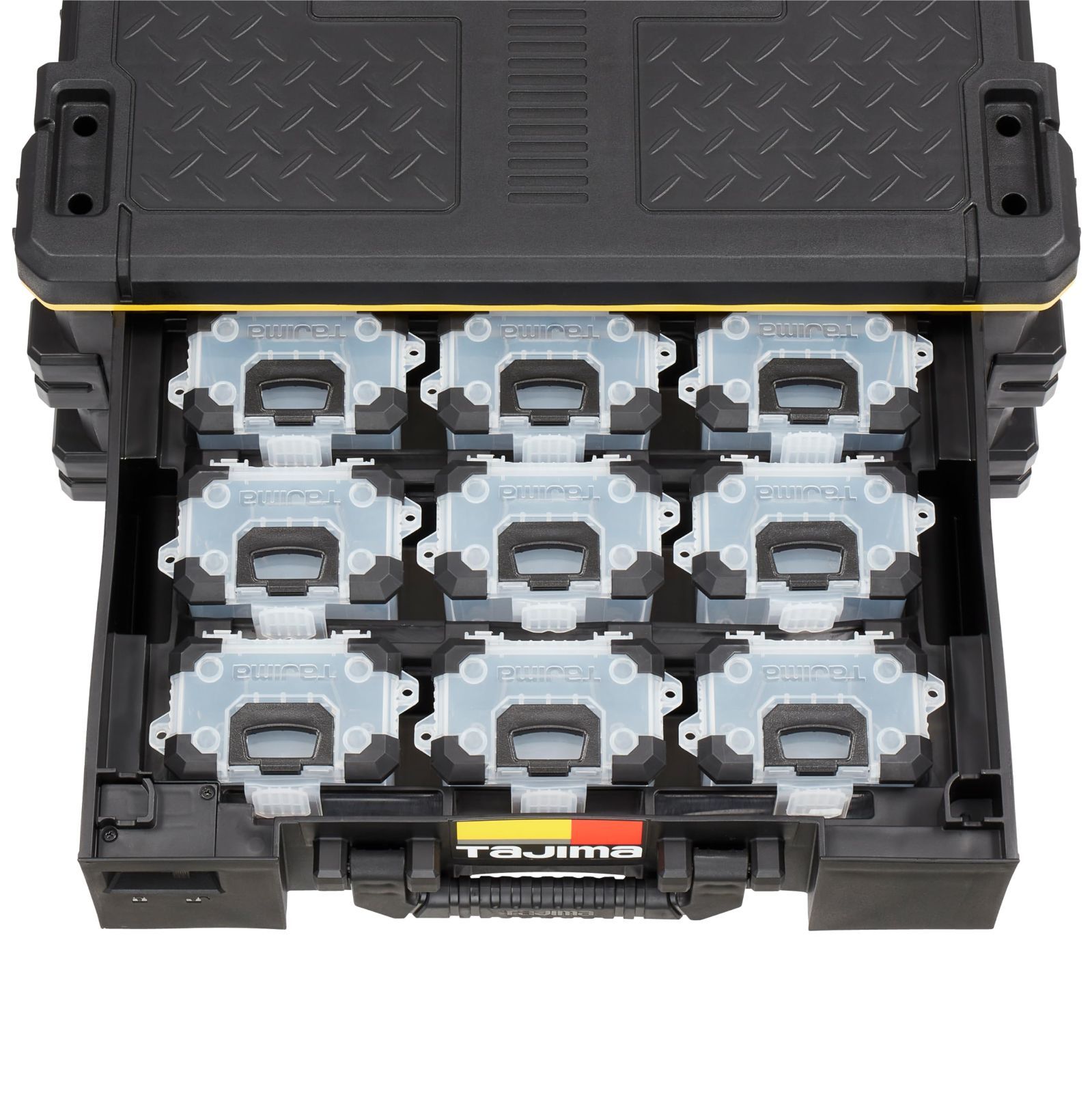 タジマ セフシステム セフ引出しボックス2段セット TB-HBOX 2 上段 セフパーツケーススSサイズ9 個 下段 フリートレイが収納された引出し型ボックス 外側にセフホルダー機能 最大積載量20 kg 上 下段の最大積載量10 重ねて置くだけで