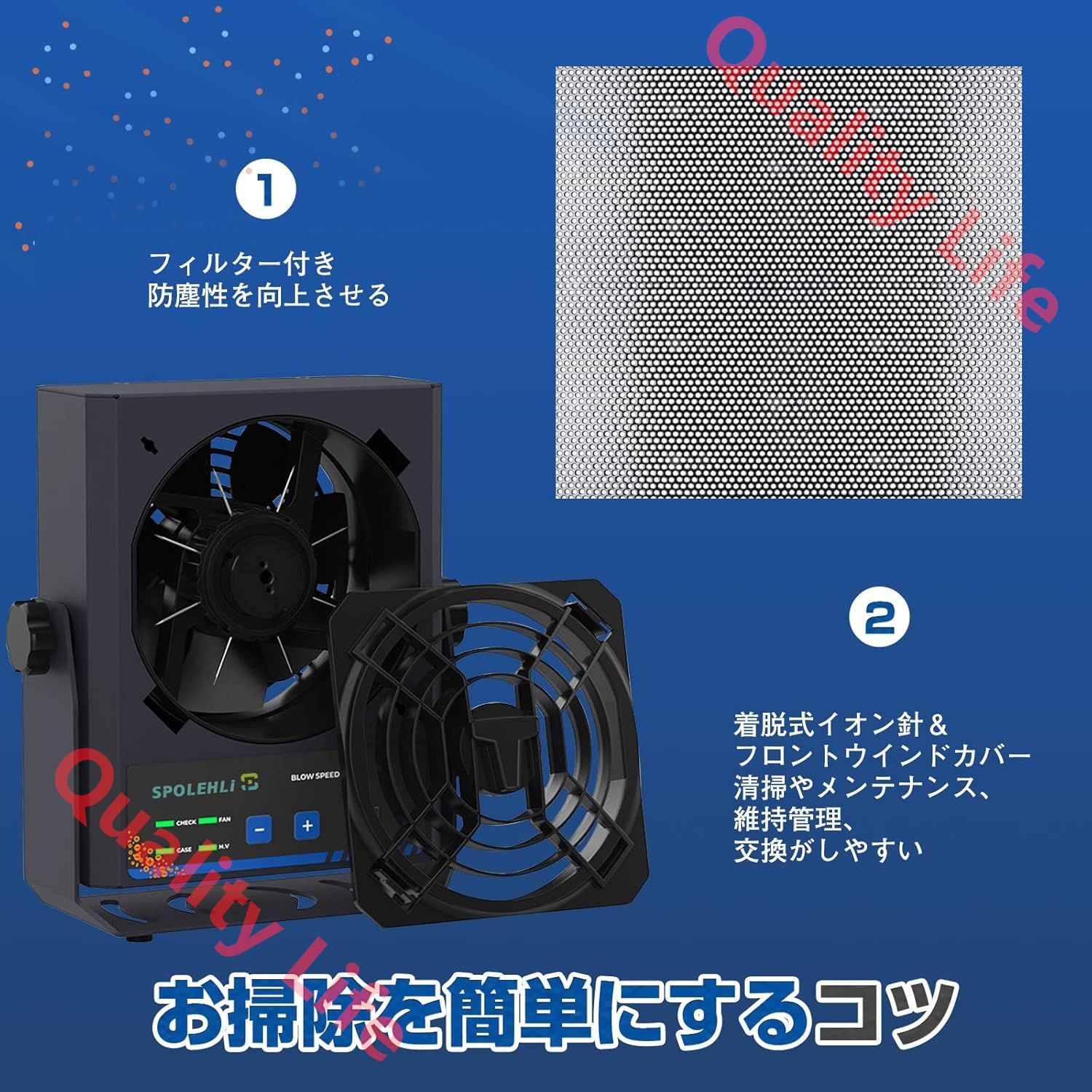 高周波 静電気除去ミニファン フィルター ストレート型·拡散型カバー付き イオナイザー 最速1.5 sで静電気除去でき 警報·12段階風量調整·I O制御機能 20 X 150 cm 40 120 cmのエアフロー面積 静電気防止 業務用 家庭用 PSE認証济